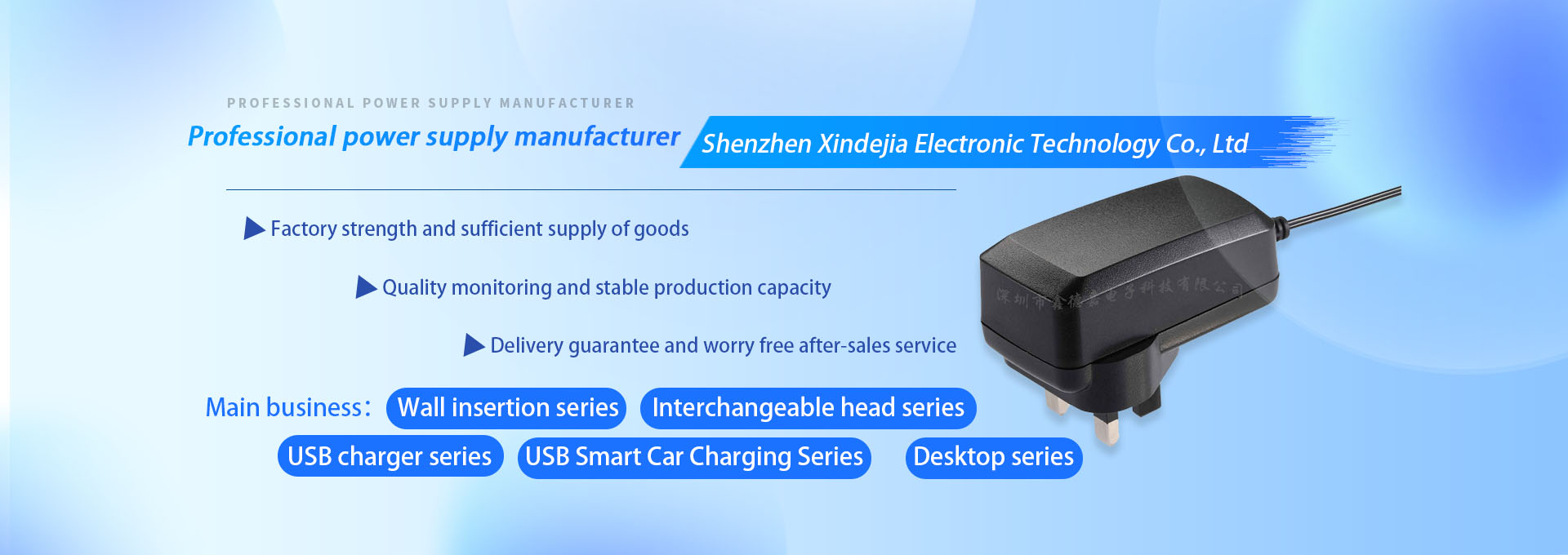 The company mainly produces power adapters, multifunctional chargers, industrial power supplies, customized production of various types of switch power supplies, advertising machine power supplies, and other products. It is a professional power supply manufacturer that integrates development, production, and sales! Our products include: wall mounted series, desktop series, interchangeable head series, USB charger series, USB smart car charging series. The company has a professional R&D team, production equipment, and refined production process, with a pool of talents and complete equipment. All products have passed multiple quality system certifications, as well as numerous product safety certifications, including UL, ETL, FCC, CE, CB, GS, CCC, CQC, PSE, KC, KCC, SAA, RCM, etc. In terms of quality, Xindejia has established a strict quality management system, with strict requirements for each product and no errors allowed. In terms of quality control and technological innovation, Xindejia has also established a reliability laboratory, which can conduct reliability tests on the performance, materials, and structure of power adapters according to various industry and international standards, ensuring that every customer is provided with high-quality and reliable products.